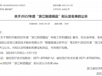 浙江省经济和信息化厅于2023年1月9日公示了2022年度“浙江制造精品”拟认定名单,开云电竞股份有限公司“第五代移动警务终端P99