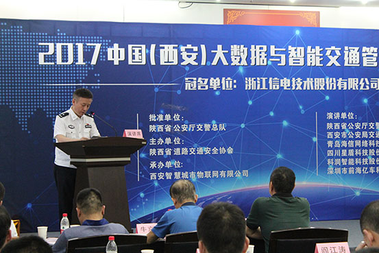 下午2:00论坛在西安曲江国际会展中心A馆多功能报告厅开始,首先由陕西省公安厅交警总队副总队长及西安市公安局副局长兼交警支队支队长刘军作《树立科学发展理念 抢抓互联网+机遇稳步推进西安智慧交通发展创新》报告紧接着,浙江信电移动警务事业部总经理孙斌上台做了《新一代移动警务平台》报告,报告得到与会嘉宾、领导高度称赞。